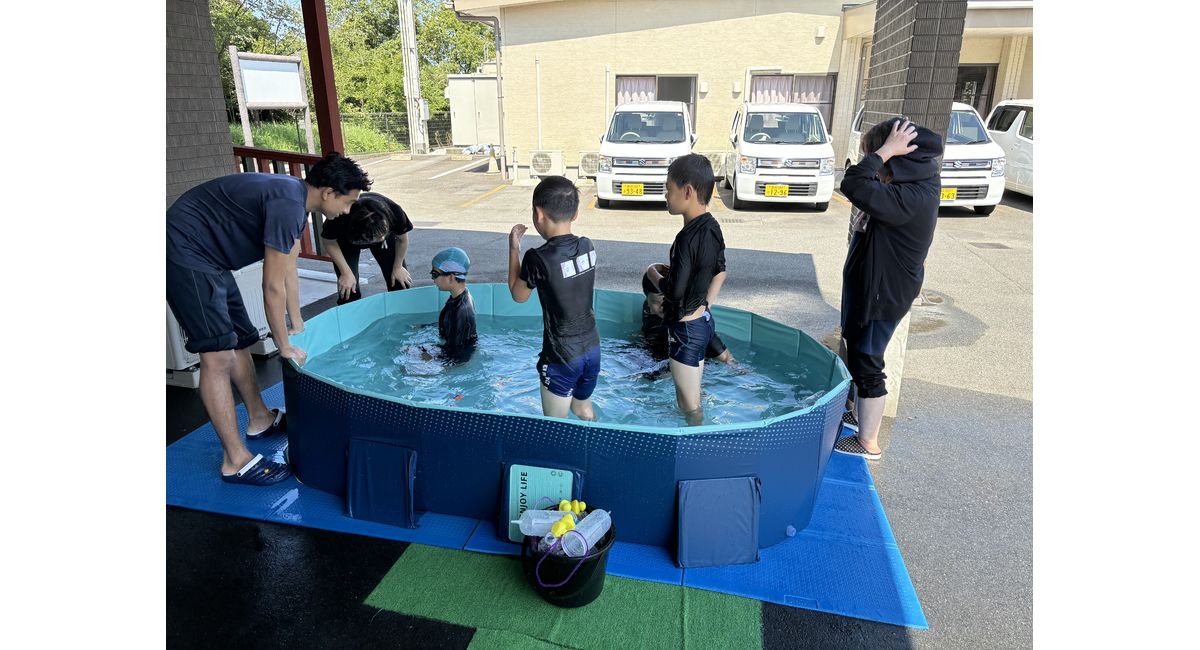 朝から放課後等デイサービスを利用している子供達の元気な声に誘われて覗いてみたら、大好きな水遊びをしていました。