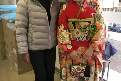 昨日は高鍋町の成人式でした。 職員の家族が正装して挨拶にきてくれました。 施設の利用者さんにも御披露目してくれました。 ありがとう🤗おめでとう🎉 残りの大学生活を楽しんで下さいね‼️