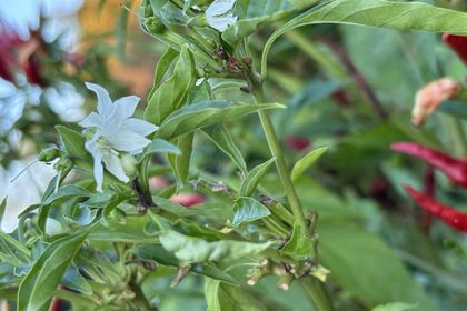 ししとうって沢山なりますね。 お花を見たのははじめて‼️ みかんの花に似た花です。