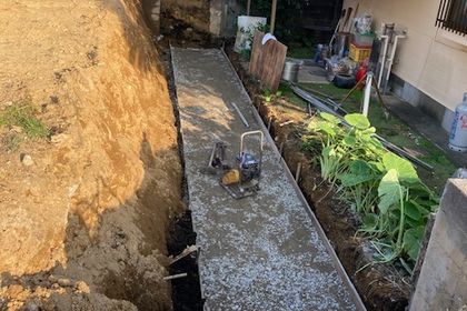数日前から始まった工事現場 近隣隣接地擁壁の補強補修工事が始まりました。 台風や大雨時に迷惑のかからないようにしっかり補強していきます。
