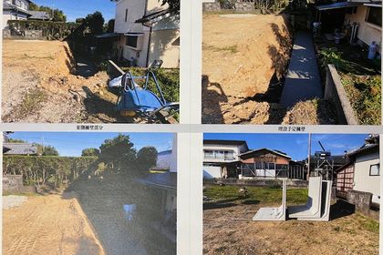 近隣隣接地の安全擁壁設置についての写真を業者さんが編集してくれました。
