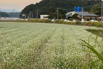 新富町の道沿いに蕎麦の畑があり花が満開 美味しい蕎麦になってね🥢