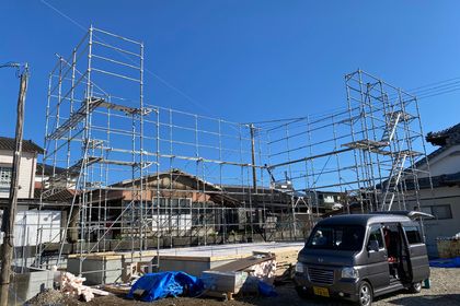 爽やかな秋空 工事も少しずつ進み足場ができていました。 安全に事故のないようにお願いします。